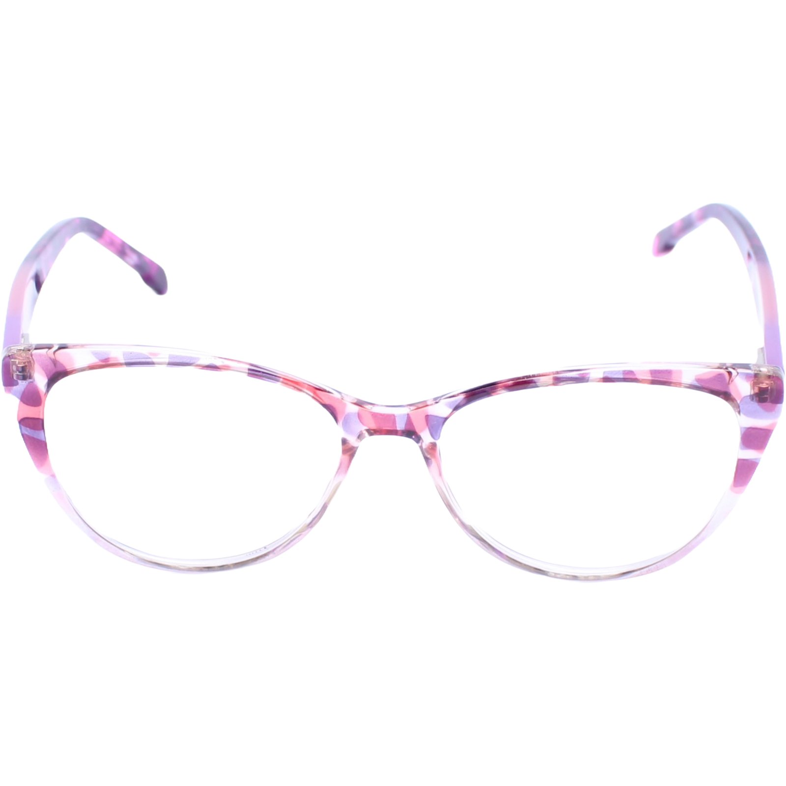 A base da armação em acetato cristal translúcido confere leveza e faz com que as cores se destaquem ainda mais. O topo e as hastes são adornados com um belíssimo padrão marmorizado em tons vibrantes de pink, magenta e roxo, criando um visual alegre, feminino e cheio de personalidade. É a escolha perfeita para quem busca um acessório que seja ao mesmo tempo delicado e marcante.