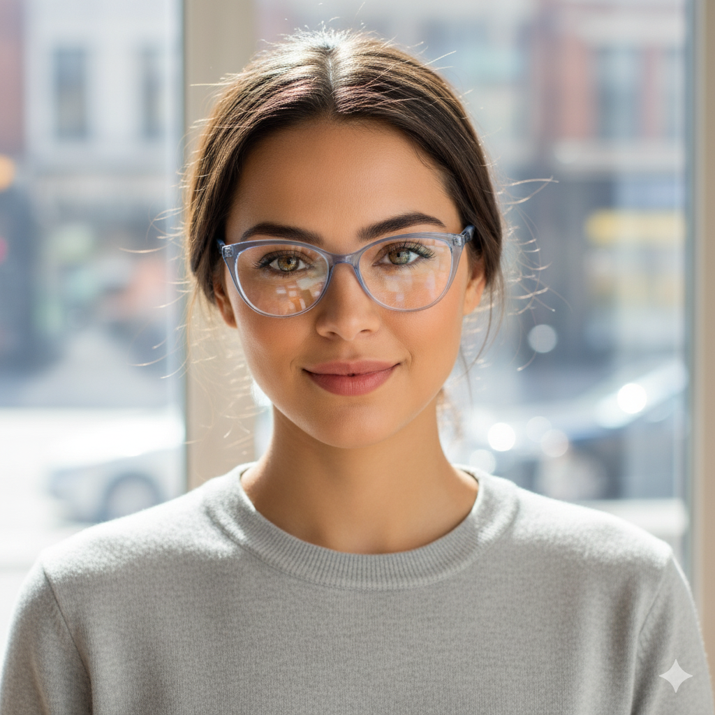 Celebre sua feminilidade com esta armação gatinho que une charme clássico e um toque de arte contemporânea. O design com formato gatinho suave, aliado à elegante ponte estilo fechadura (keyhole), valoriza o rosto e levanta o olhar de forma delicada e sofisticada.