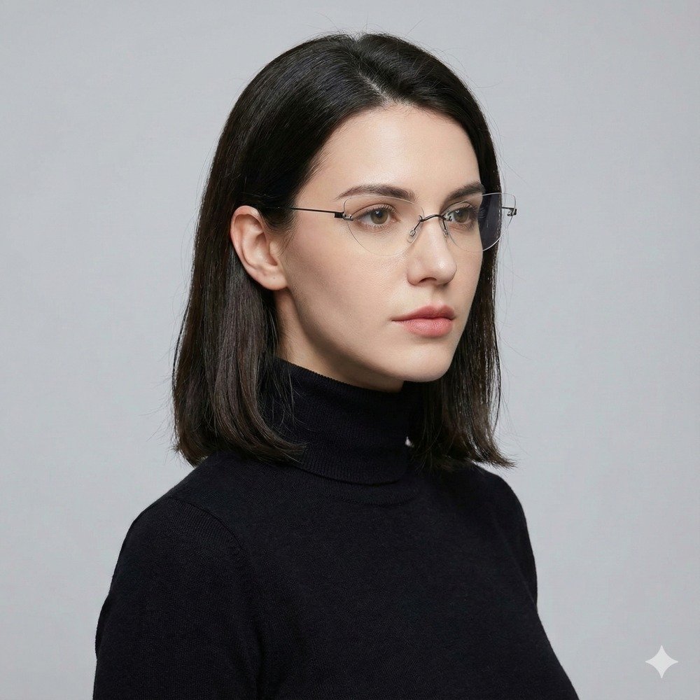 Conforto Peso-Pluma: Fabricada em titânio de alta qualidade, a armação é incrivelmente leve e hipoalergênica. O design sem aros (rimless) suaviza o formato gatinho, tornando-o delicado e fácil de combinar com qualquer look.